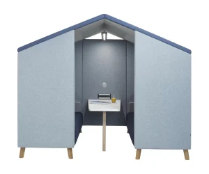 - Single, hexagonal, upholstered personal ‘cluster’ pod